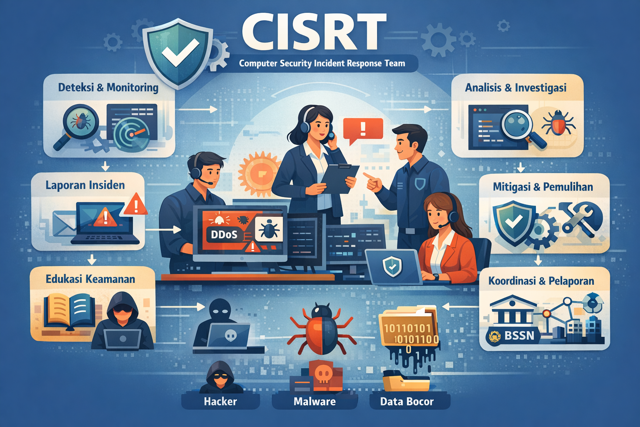 CISRT, yang secara umum merujuk pada CSIRT (Computer Security Incident Response Team), adalah tim atau unit khusus yang dibentuk untuk menangani insiden keamanan siber pada suatu organisasi, instansi pemerintah, perguruan tinggi, maupun sektor strategis lainnya. CISRT berperan sebagai garda terdepan dalam menjaga keamanan sistem informasi dengan cara melakukan deteksi dini, respons cepat, serta pemulihan ketika terjadi serangan siber.