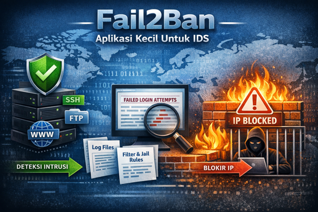 Keamanan server merupakan aspek penting dalam pengelolaan sistem berbasis Linux, terutama untuk server yang terhubung langsung ke internet seperti web server, mail server, atau VPS. Salah satu ancaman paling umum adalah serangan brute force terhadap layanan seperti SSH, FTP, dan aplikasi web. Untuk menghadapi ancaman ini, dibutuhkan sistem deteksi intrusi (Intrusion Detection System / IDS) yang ringan namun efektif. Fail2Ban hadir sebagai aplikasi kecil yang mampu menjalankan peran tersebut dengan baik.